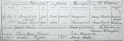 For me the key issue is the relationship of my great grandfather, Thomas Henry Charles to this family. No record of the birth of Thomas Henry to Dr Henry Richard Charles exists & indeed the latter's obituary mentions the death of his only son. However the marriage certificate of Thomas to Amelia Rogers in 1885 gives his father as Dr HR Charles.